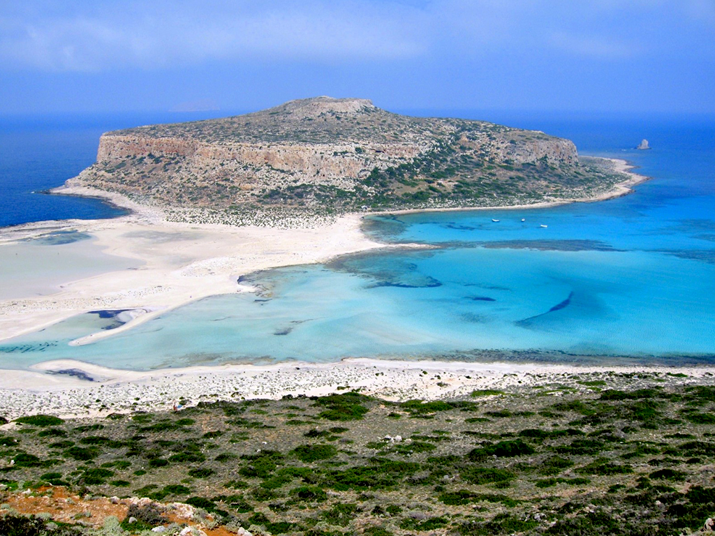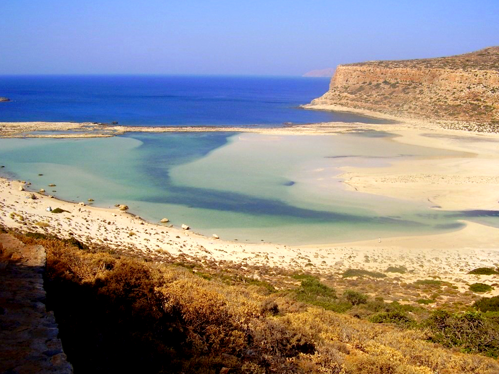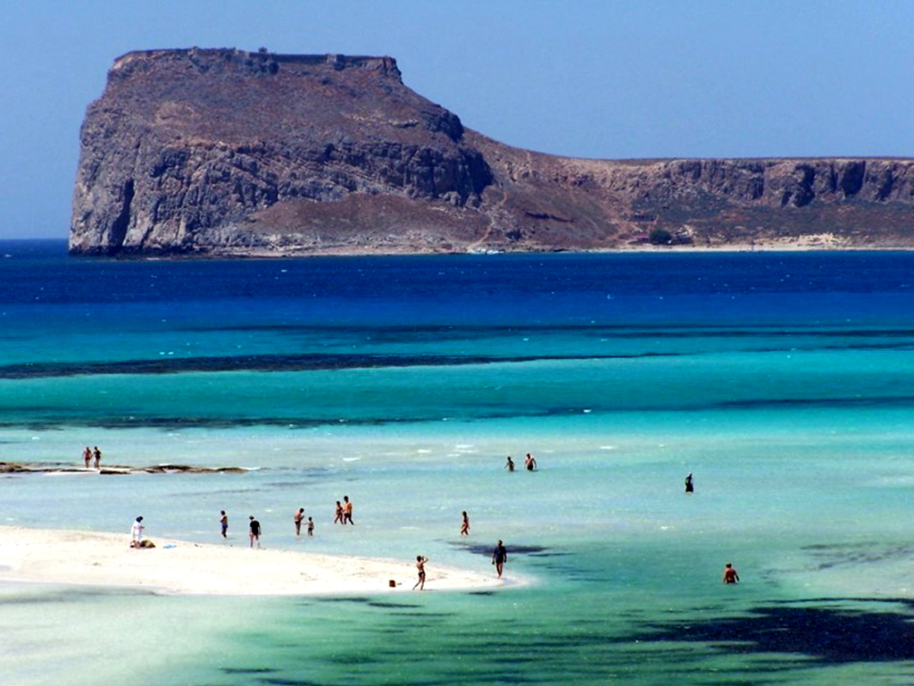 The famous lagoon of Balos is located approximately 56km northwest of Chania and 17km northwest of Kissamos, formed between the Cape Gramvousa and the small Cape Tigani. Balos is surely the mostly photographed beach in Crete, a very favorite subject of all tourist guides for Greece. It is no coincidence that Prince Charles and Princess Diana visited Balos with their private yacht many years ago.
