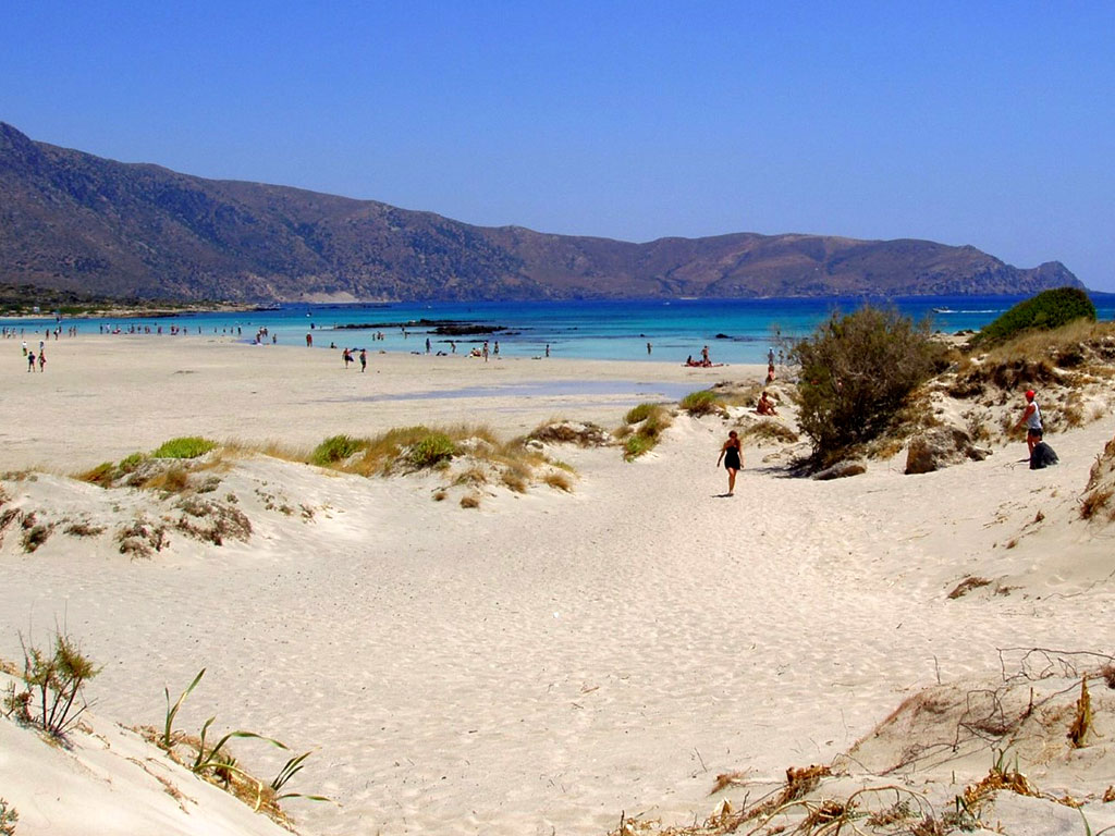 Elafonisi is located 76km west of Chania and 5km south of Chrysoskalitisa Monastery, in the southwesternmost point of Crete. Elafonisi is an oblong, which often "breaks" in two parts by water giving the impression of being a separate island. Elafonisi is a Natura 2000 protected area. The island is full of dunes with sand lilies and jupiners (like-cedars trees). The endangered turtles careta careta and several rare animals nest on the island and it is strictly forbidden to remove any plants, animals and sand from the area.
